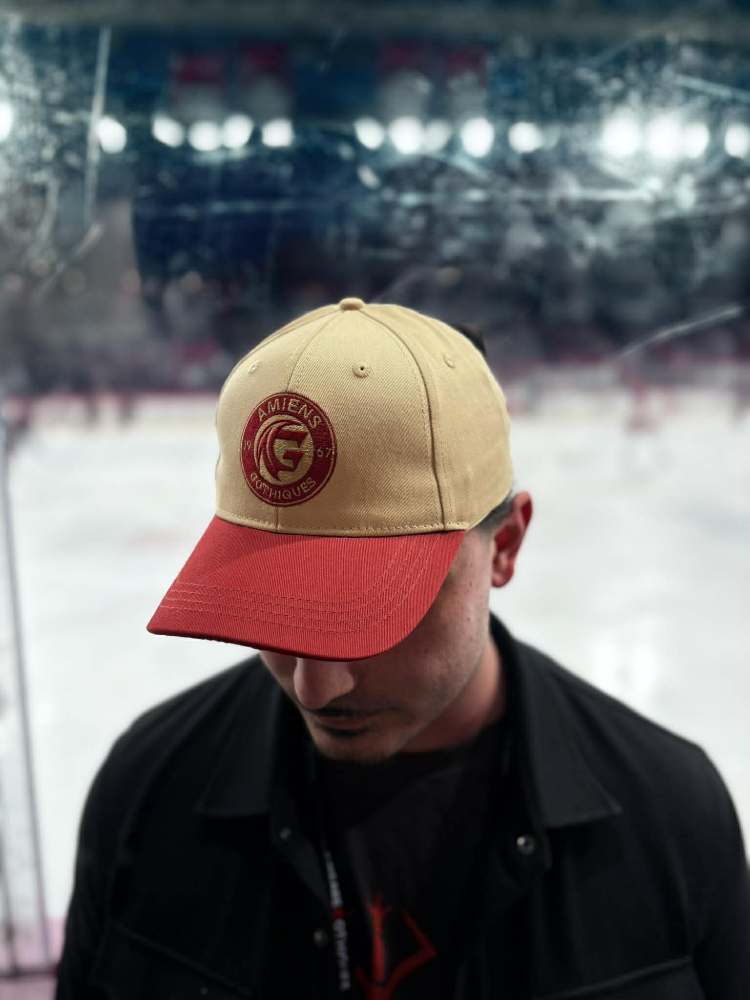 Casquette bicolore crème-rouge